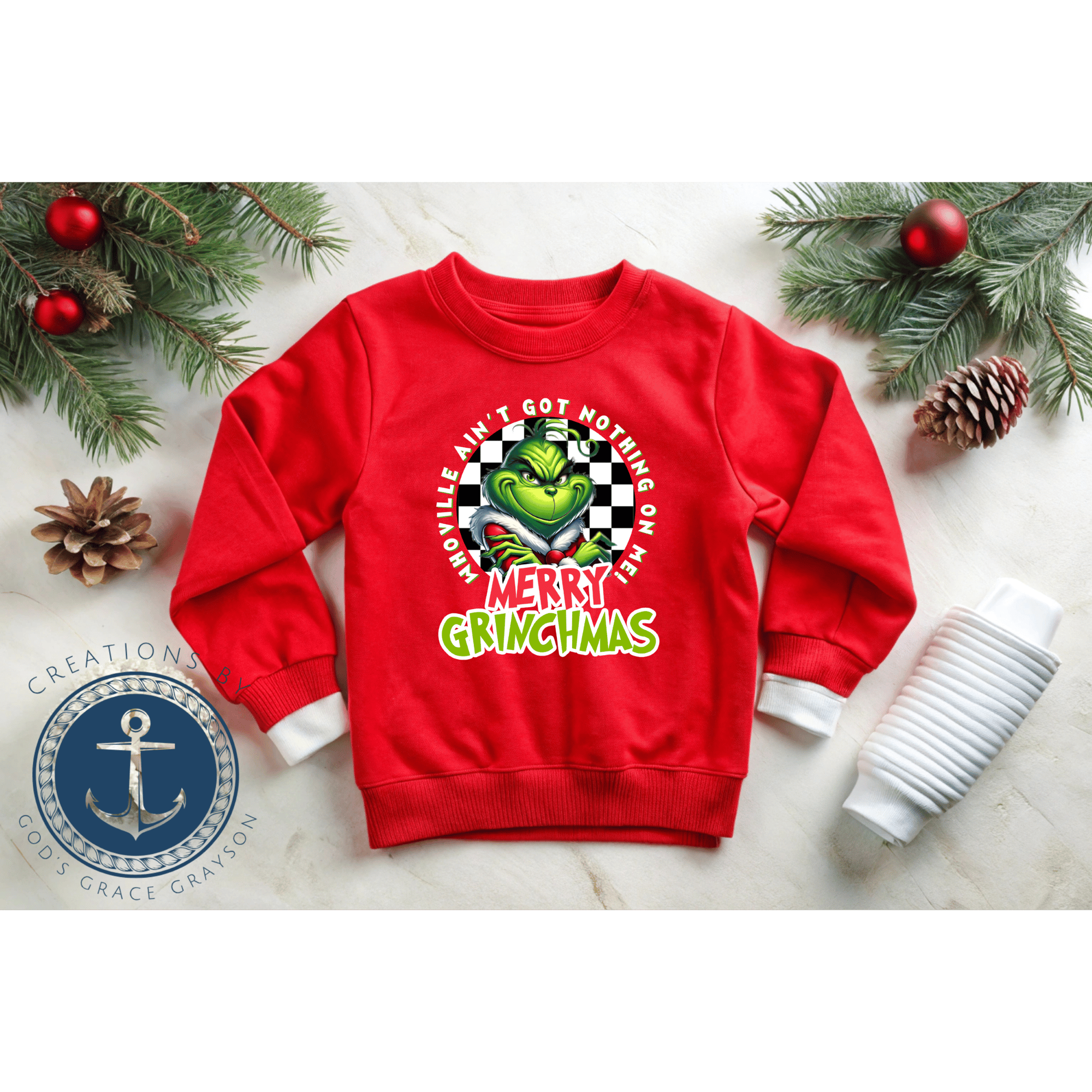 Perfect for little ones with big holiday personalities, this cozy kids’ Christmas sweatshirt features a bold “Merry Grinchmas – Whoville Ain’t Got Nothing on Me” design on festive red fleece that’s made for all-day comfort and play. Crafted from a soft, durable cotton-blend with a vibrant, high-quality print, it keeps your child warm while holding its color and shape wash after wash. The fun, sassy Grinch-inspired graphic pops in photos, school parties, and family gatherings, making your kid the star of every Christmas moment. Ideal as a holiday outfit or unique gift, this unisex crewneck is easy to layer, easy to style, and easy to love. Priced at just $24.99, this merry statement sweatshirt turns ordinary Christmas wear into unforgettable Grinchmas cheer.